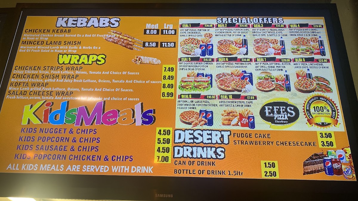 Introducing Efes Pizza Kebab Burger, a delightful fast-food haven located in Shawbury, Shrewsbury. This Turkish restaurant offers an enticing menu that caters to lovers of kebabs, pizzas, and burgers, with an emphasis on freshness and flavor.